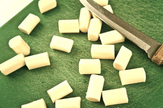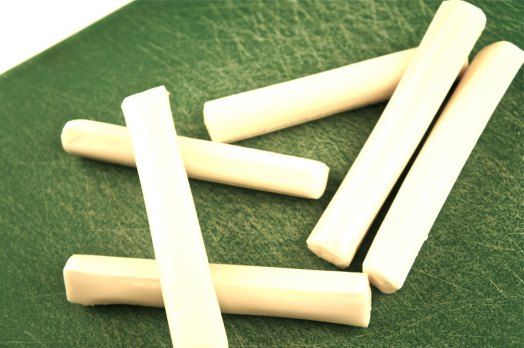 - Quarter each cheese stick for a total of 24 pieces of cheese.