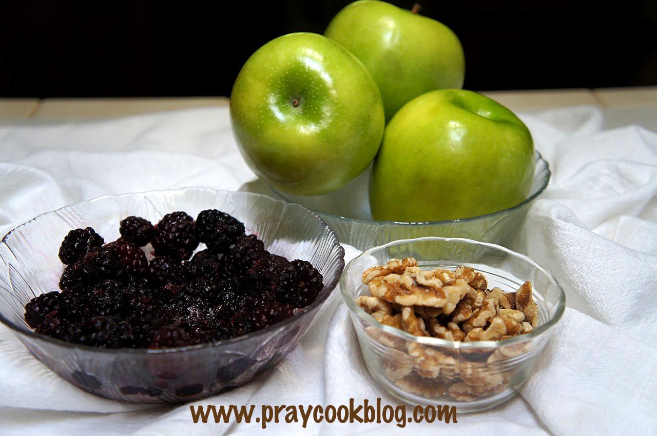 Looking around my pantry, refrigerator and freezer I had blackberries, Granny Smith apples and walnuts. A great start.