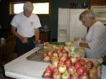 My brother-in-law gave us 10 gallons of apples yesterday. Whew, that is a lot of apples. My sweet husband took pity on mother and I and assisted in the assembly line of getting these apples from the buckets to the freezer. The last 12 cups ended up as an apple crisp for us and one for our neighbors, Kevin and Kathy. This is a basic apple crisp, but the caramel and the vanilla give it an added richness befitting the freshest of fall apples!
