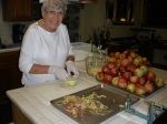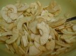 Peel and core the apples and cut them in 1/8 inch thick-crescent-shaped slices.