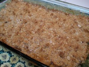Transfer the apple mixture to a 2-quart greased glass baking dish; spread it out well, filling to all the corners.