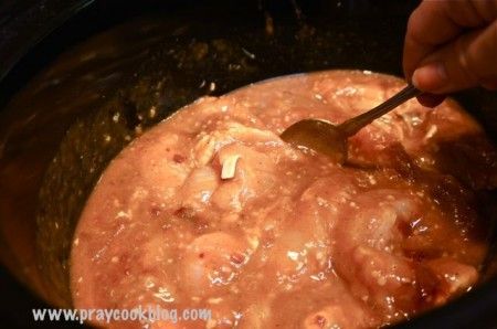- Turn off the heat to the slow cooker, remove the chicken and shred with two forks. Return back to the pot, stir and let cook down so the sauce can thicken up, about 15 minutes.
