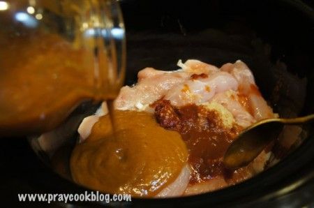 Pour the sauce over the chicken and cook on high for 3 to 4 hours or until the chicken is fully cooked and falling apart.