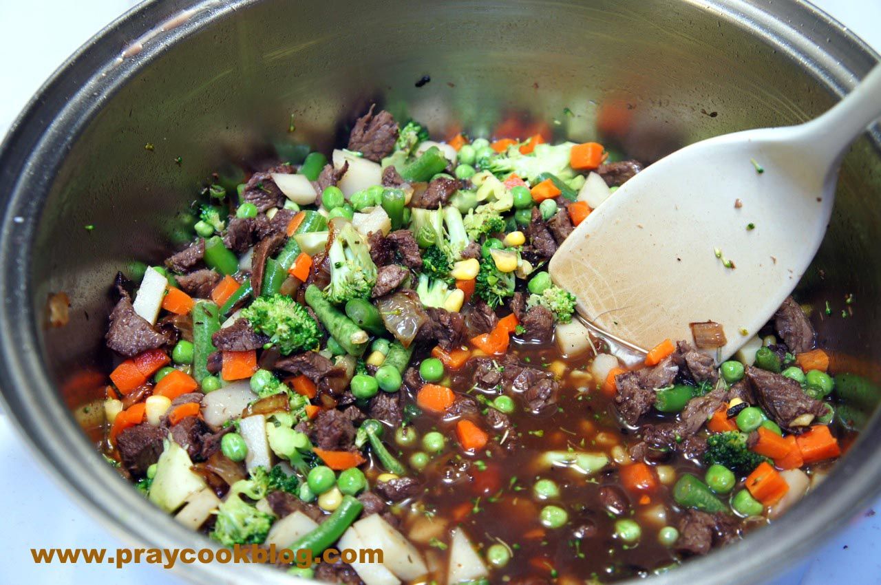 Leftover roast beef or steak of any kind works perfectly in a pot pie. If you haven’t any leftovers, cooking some beef stew meat is a quick and easy replacement.Pot pies are an ultimate fall season food for me. The weather is cool enough to crank up the oven and bake! The flavor of red wine melds just perfectly with beef. Red cooking wine works okay but your husband’s “good stuff” is really what will make this pot pie outstanding!Onions, potatoes, broccoli, mixed vegetables of any kind and any other favorite veggie creates an amazing color palette and as well as an amazing taste on your palate! Isn’t this pretty? Does it make you think of fall?