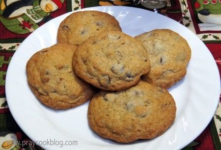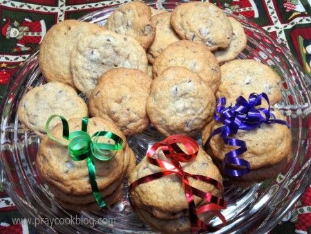 - Gradually stir in flour mixture. When cookie dough is well mixed stir in chocolate chips and walnuts.