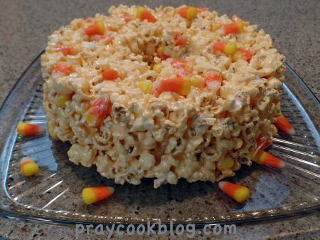 Candy Corn Popcorn Cake