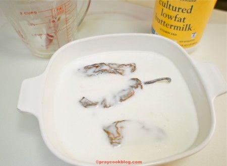 - In a small bowl combine chilies and buttermilk. Set aside for one hour.