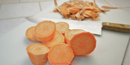 - Peel the sweet potato(s) and cut into several small pieces. Place into a pot of boiling water and boil until fork-tender, approximately 20 minutes. Drain cooked potato pieces and mash with a fork. Set aside to cool.