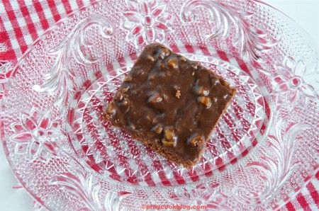 - After taking cake from the oven, spread frosting over the hot cake. Cool. Cut into squares. Enjoy!