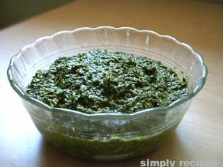 - Add the olive oil/garlic mixture in a constant stream while the food processor is on. Get everything you can out of the food processor with a rubber spatula. The mixture should be ground to a paste-like consistency but a little bit of the leaves' texture should remain.