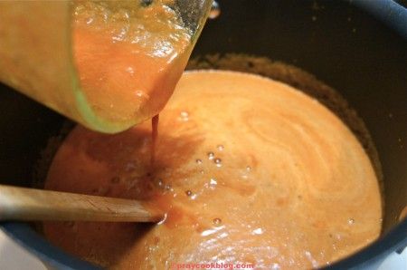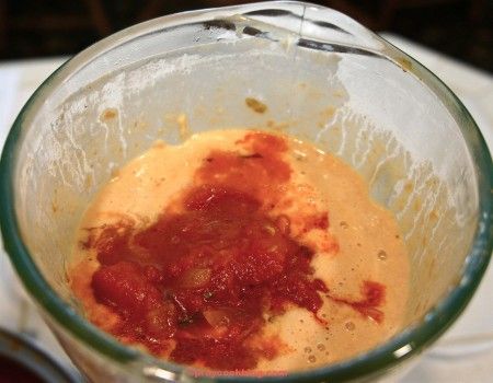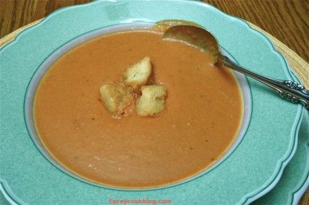 - Remove soup from heat and allow to cool slightly. Add small amount of soup into creamy tofu. Pour creamy mixture back into tomato soup. Working in batches, add creamy soup mixture into blender and puree for a creamy texture to your taste.