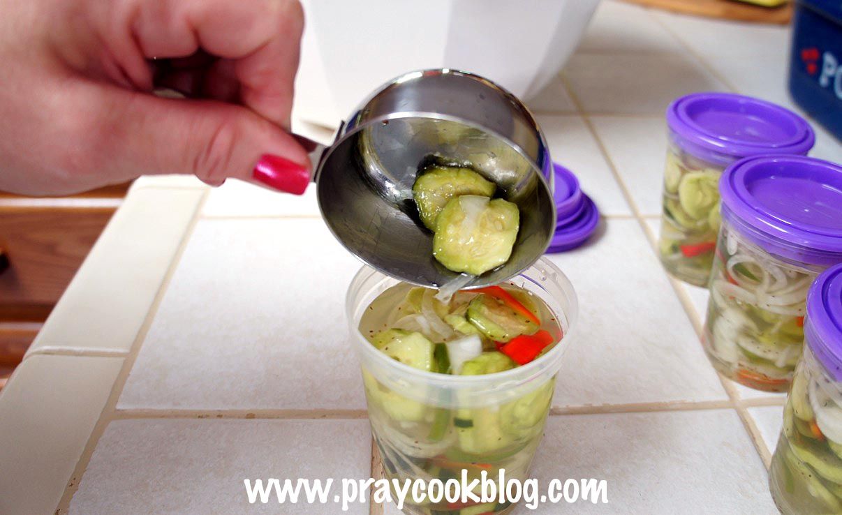 I left them in the freezer a week or so. I let them thaw in the refrigerator and I’ll be — they are nice and crispy, very tasty dripping with the sweet and sour of the sugar and vinegar! The onions and red pepper stays crisp as well. If you have access to more cucumbers than you can eat fresh, but you don’t want to mess with the pickling and canning process … not to worry. FREEZE THEM! When I asked Kathy how she liked her freezer pickles she reported she has already made two batches and they love them!