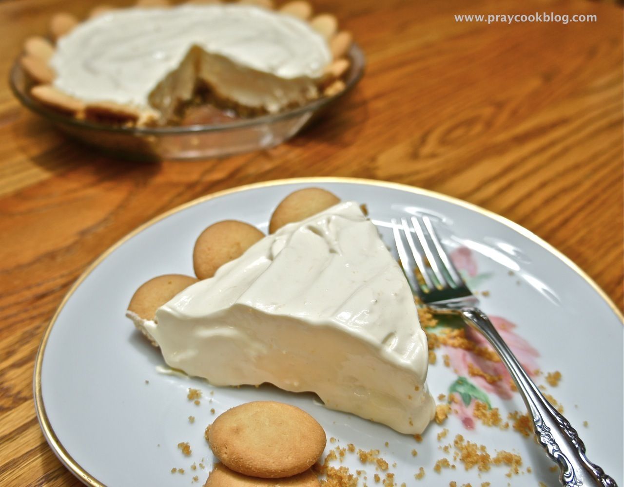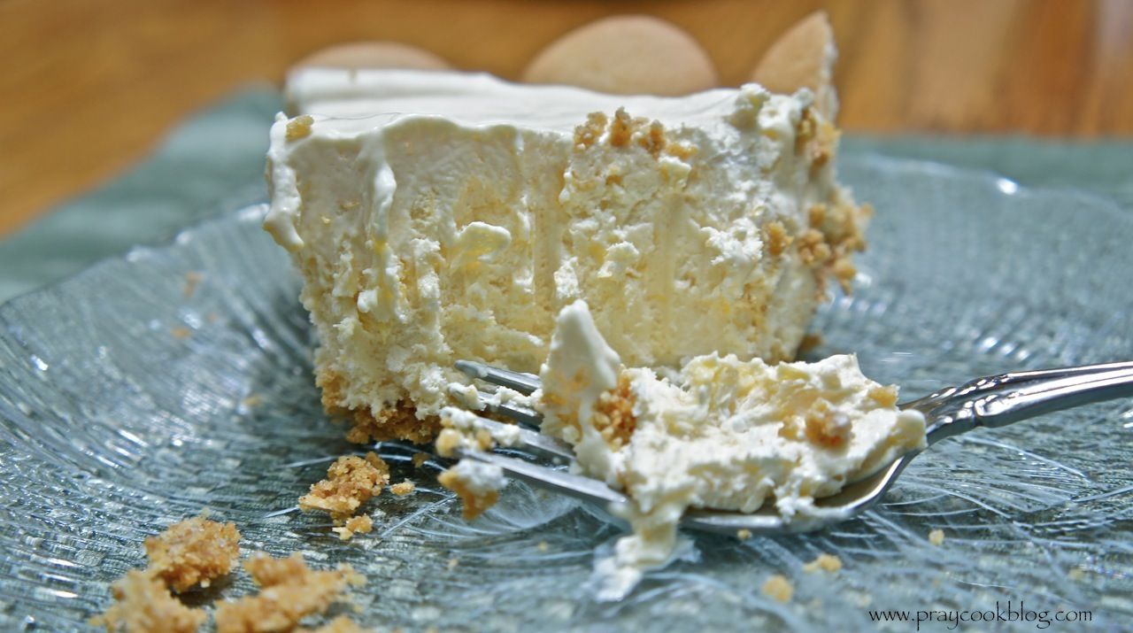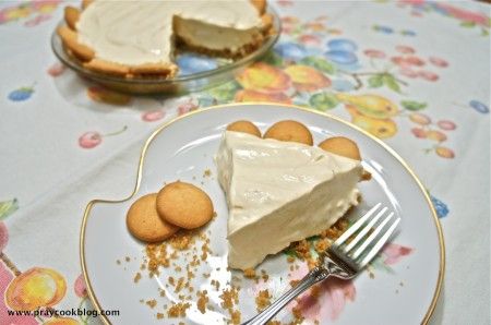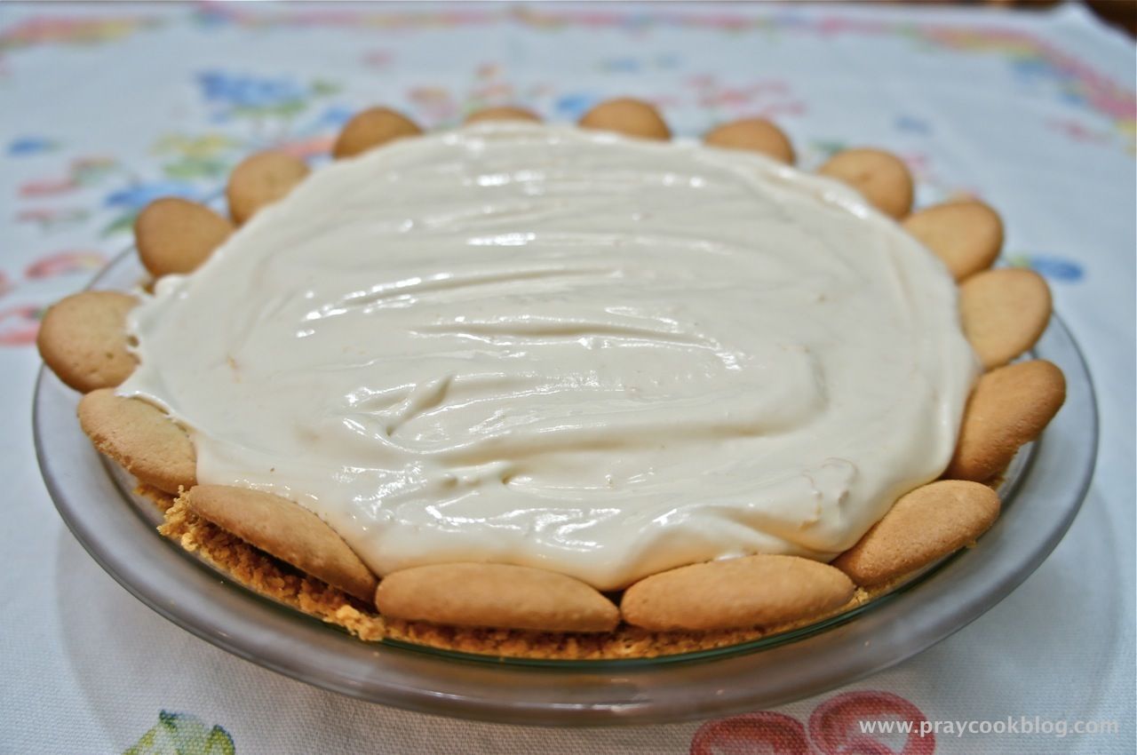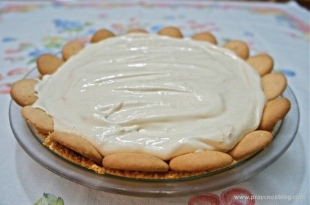 - Remove about ½ cup of the whipped topping from the tub and set that aside in the refrigerator for garnish. Gently fold the remaining whipped topping into the lemon mixture until well blended. Pour this into the crust and place vanilla wafers all around the rim of the pie plate. Place pie into the freezer for several hours, or preferably overnight, before serving.