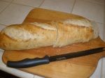 Melt ¼ cup butter and slice a baguette (or whatever comes along) into ½ inch thick slices**. Dip one side into the butter and place that side up covering the sauce entirely.