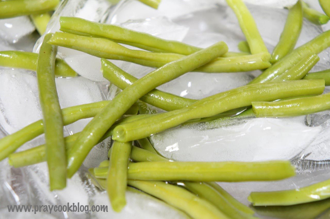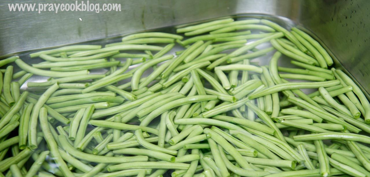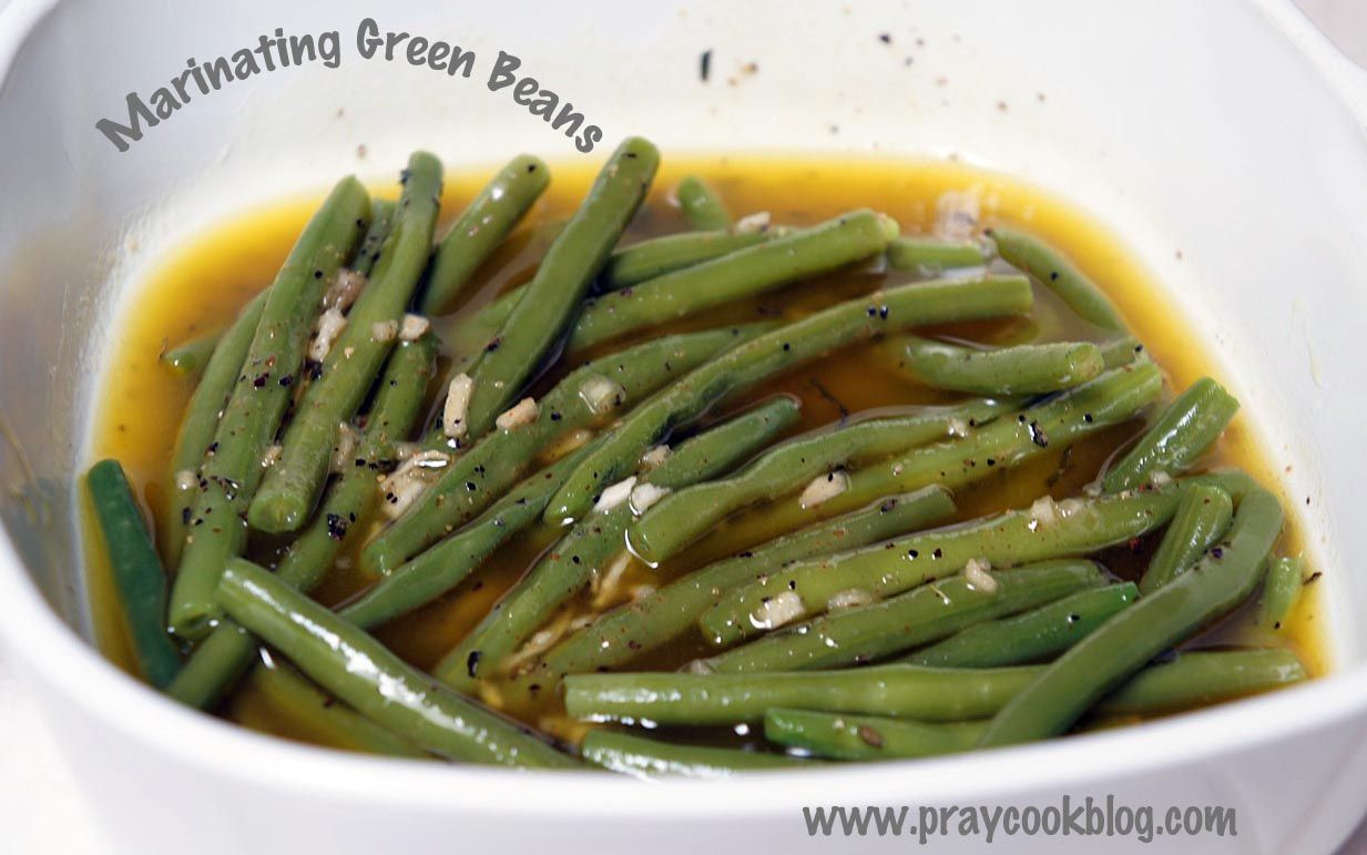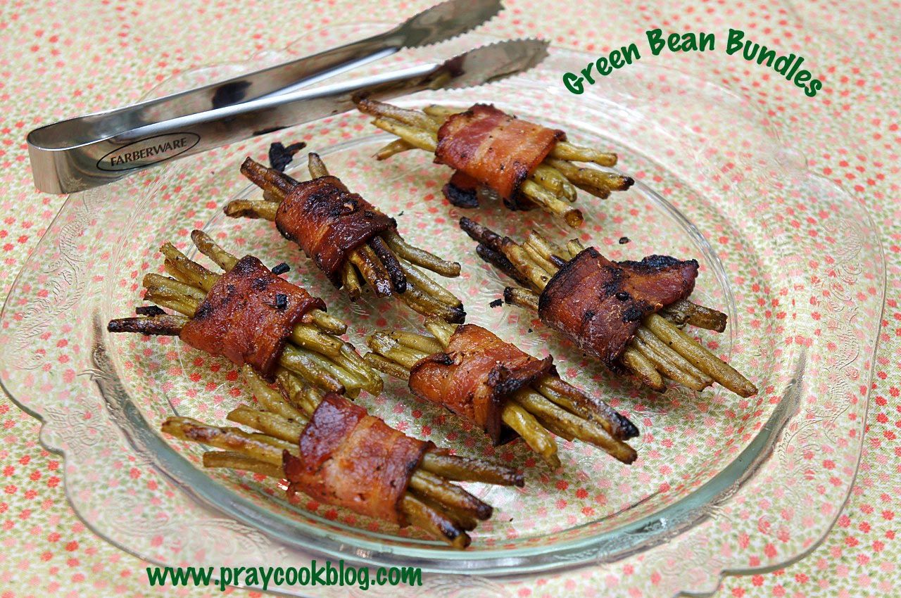 Not only are these a fabulous side dish, I think they would make a great appetizer! Fresh green beans can be purchased at the grocery store almost year around these days. However, you may also use canned beans for this recipe.