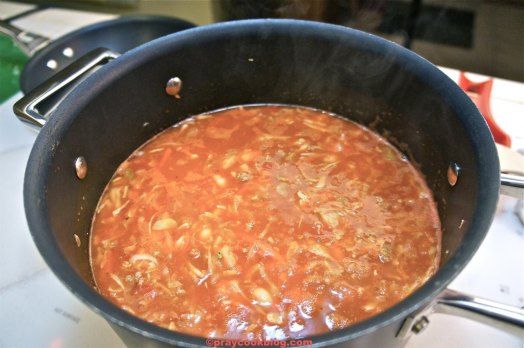 My family likes soup. Mom and I make a lot of soup in the winter. I have made cabbage soup before. But never have I made a cabbage soup that popped with this much flavor! Both of my culinary consultants repeated throughout supper, “this is good”, “this is really good.” Folks, that’s why I cook. No kidding. I love it when it is really good! The recipe calls for ground beef. I used ground turkey. You can use either. I use the turkey because it has less fat and when the soup simmers there is no oil that rises to the top. Even when I drain the hamburger well, there still is oil I don’t like in the soup. Just a personal preference.