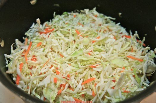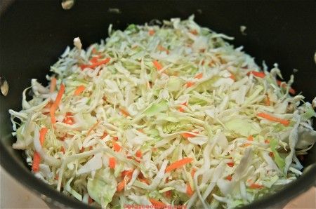 - Add chopped cabbage to the cooked meat/onion mixture. Stir in remaining ingredients.