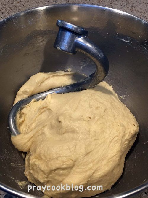 - Add soft butter and knead another 10 to 12 minutes (it will take a few minutes for butter to be incorporated), until the dough is smooth and springy and just a bit tacky.