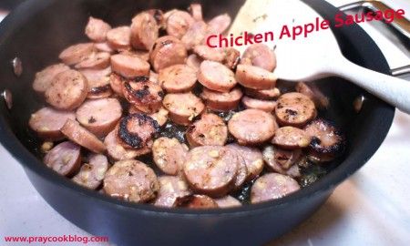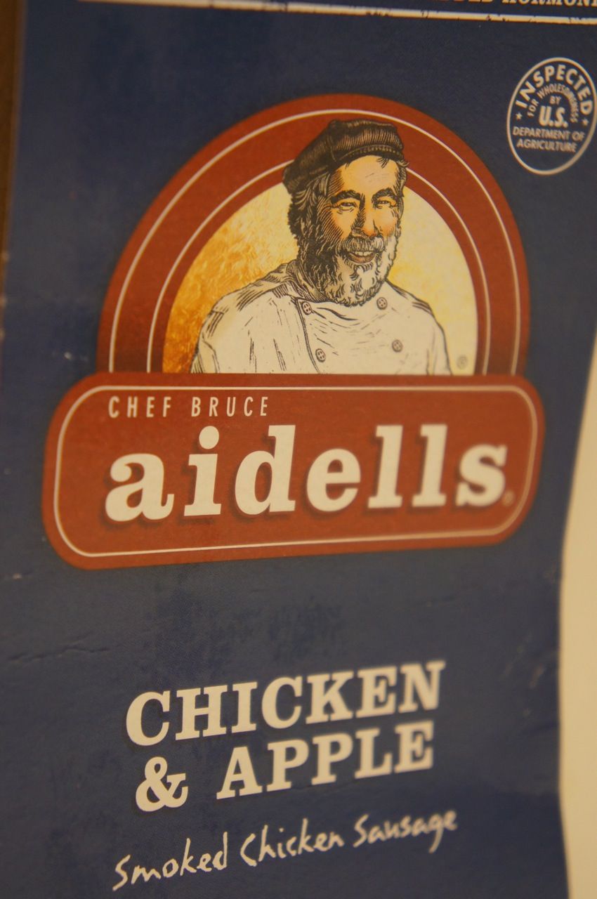 - 5 aidells Chicken Apple Sausage, sliced thin