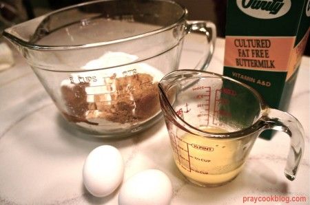 - Preheat oven to 375 degrees F. Lightly grease 4 mini muffin tins. In a medium-sized bowl, cream together the butter, vegetable oil, vanilla, almond extra and sugars until smooth. Add the eggs and buttermilk.