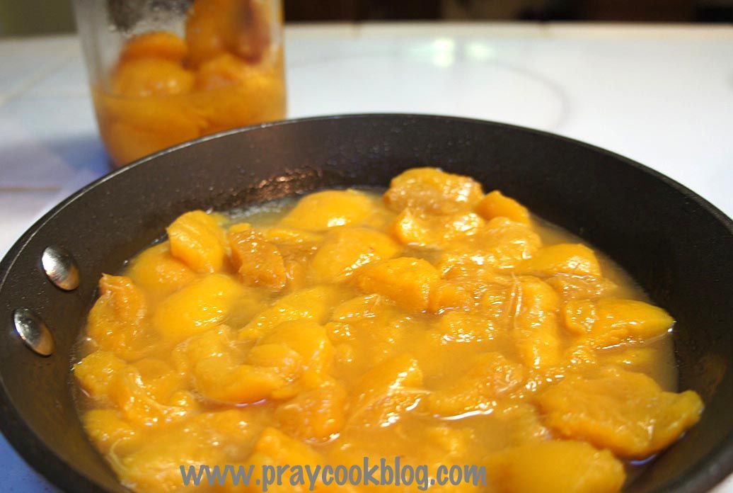 One of the first fruits from last season were peaches from our two little peach trees. During a recent inventory of my canned fruits and vegetables I realized I needed to use up some of our canned peaches from last year.