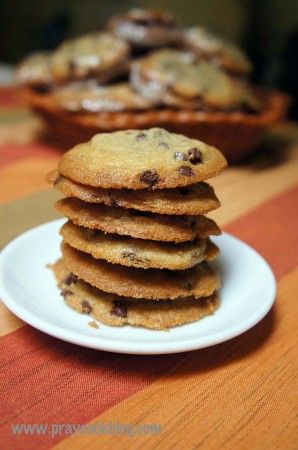 True to her testimony these cookies are crispy on the outside and a little chewy on the inside. I made one change using 1/2 coconut oil for half the butter. The coconut oil package says that it is great for baking and can be used in place of butter. It is healthier than butter and has no cholesterol so I wanted to give it a try. I think it worked well. A sprinkling of coarse kosher salt on top makes for the perfect combination of sweet and salty.