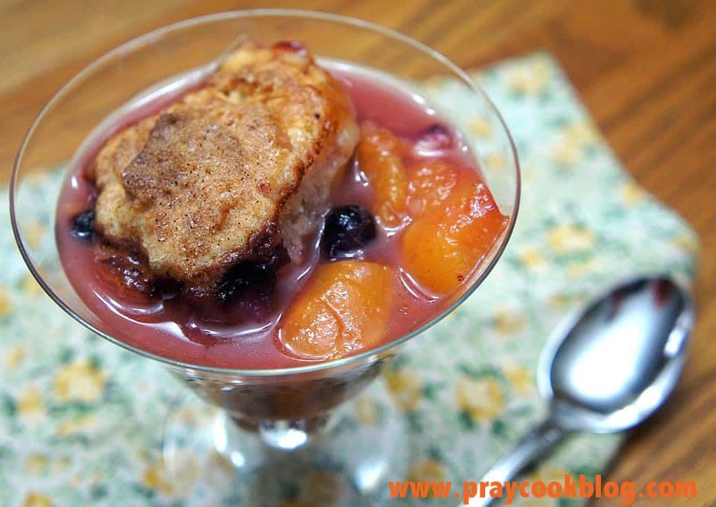 An excellent recipe adapted from Barefeet In The Kitchen. I increased the cobbler ingredients giving plenty of good biscuit-y topping.