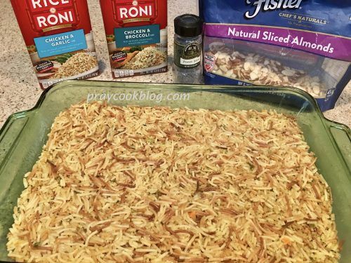 - 2 boxes Rice-A-Roni (Fried Rice with Almonds or any favorite flavor)