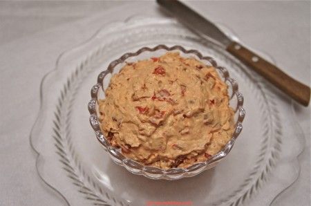 - At this point the spread can be used on sandwiches or as a dip. If desired, you may transfer to an 8-inch dish or pie plate and either microwave on 70% power for 5 minutes or bake in a 350 degree F. oven for 20 minutes.