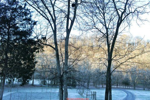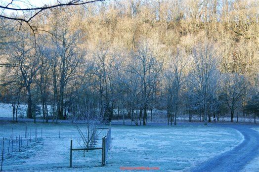 Sunday morning my husband woke me up early and said “you better get your camera, everything is frosted and the sun is coming up!” I jumped out of bed, threw on a robe, grabbed my camera and headed outside, in 20 degree weather! I wasn’t disappointed or too cold as I watched the sun come up bathing the hilltop in golden light while all the world below was frosted in blue ice. These pictures give a whole new meaning to Winter Blues.