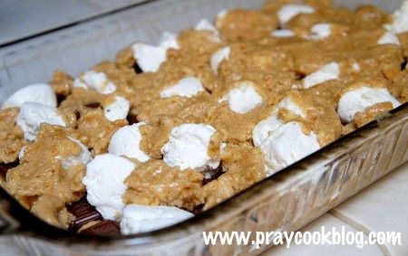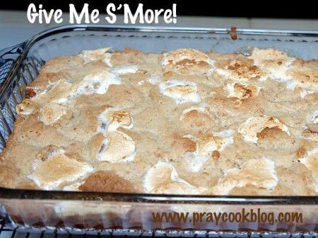 For several months now I’ve seen S’more Bars popping up around the internet, on Pinterest, and on some of my favorite blogs. I didn’t get too excited about them until I came home from our family reunion. You see, I bought graham crackers, marshmallows, and Hershey Candy Bars for making s’mores around the campfire during our week at Kentucky Lake. But it turned out it was just too hot for a campfire. So, I packed up the grahams, the mallows, and the candy and brought them back home. Fast forward a couple weeks to the arrival of the kidlings and my desire to make some treats for them. A quick search and I found the S’more Bar recipe on Taste of Home’s website. Since I tweaked it a bit to suit my ingredients, I’ll put the link here to the actual recipe (but trust me, you will like mine better!).