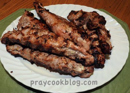 - Fire up the grill and when it has its cooking temperature of 350 F, remove the marinade from the meat and grill to desired doneness, 30 to 40 minutes.