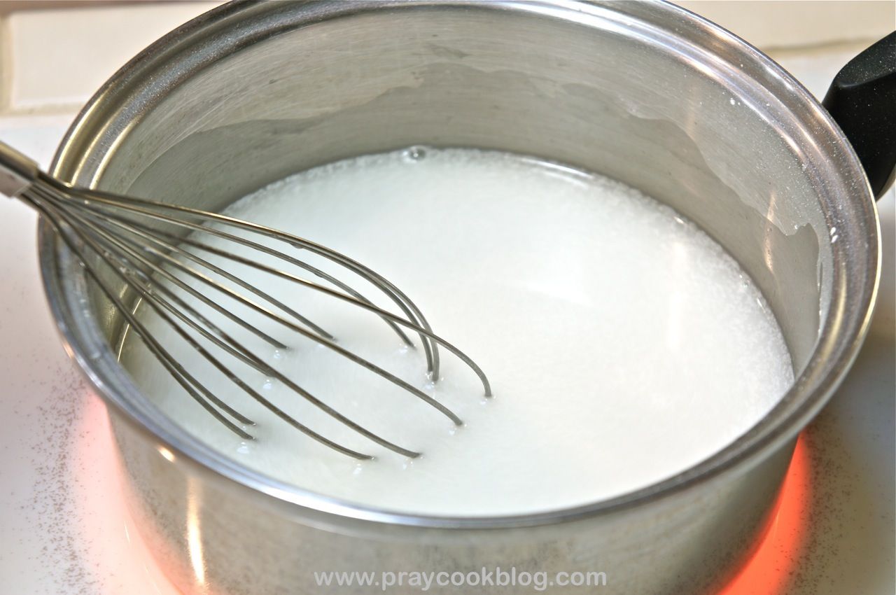 - In a 2-quart saucepan, whisk together sugar, cornstarch, and 1½ cups water. Set over moderate heat and simmer, whisking constantly until mixture becomes thick and clear, about 6 to 7 minutes.