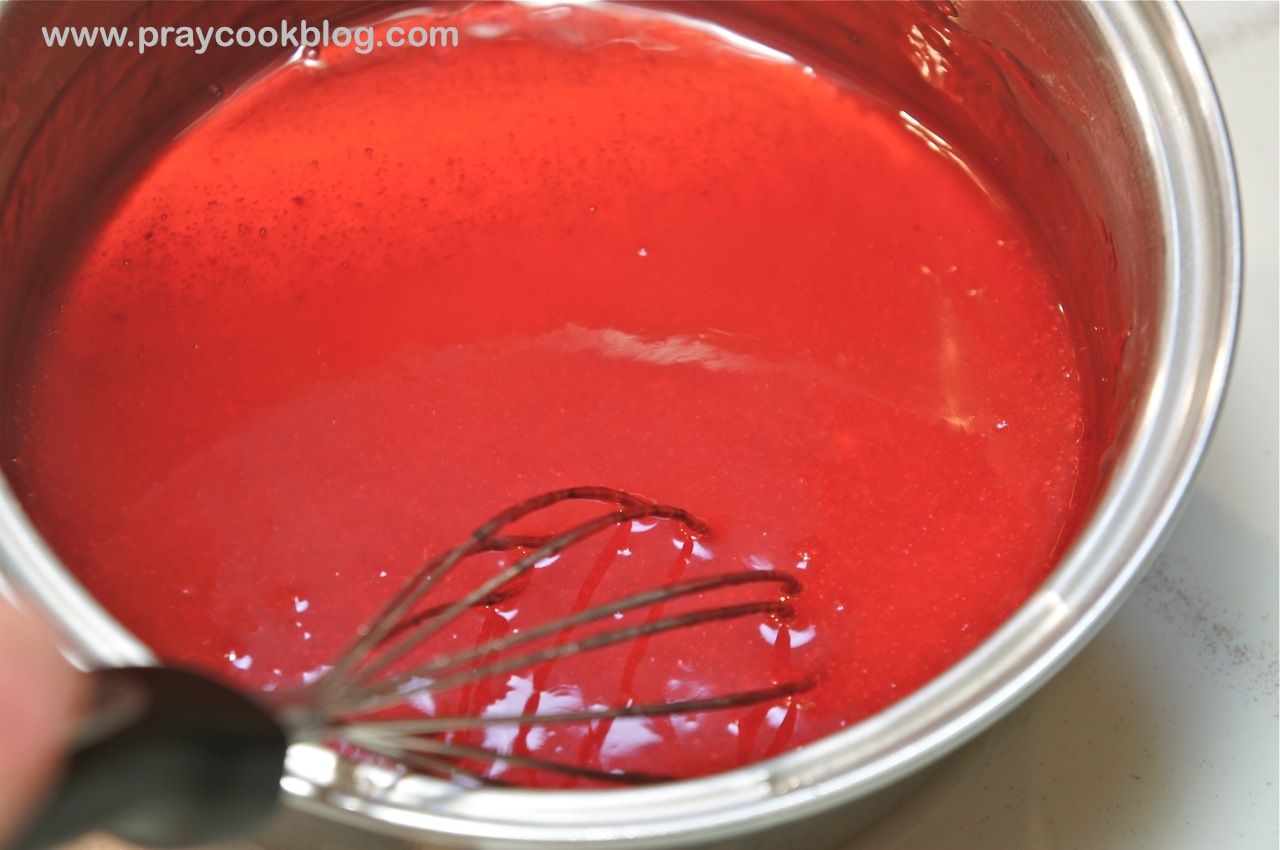 - Carefully and slowly stir in the jello. Continue to cook and stir until jello is dissolved and the filling is thick. Once thick, remove from heat and set aside.