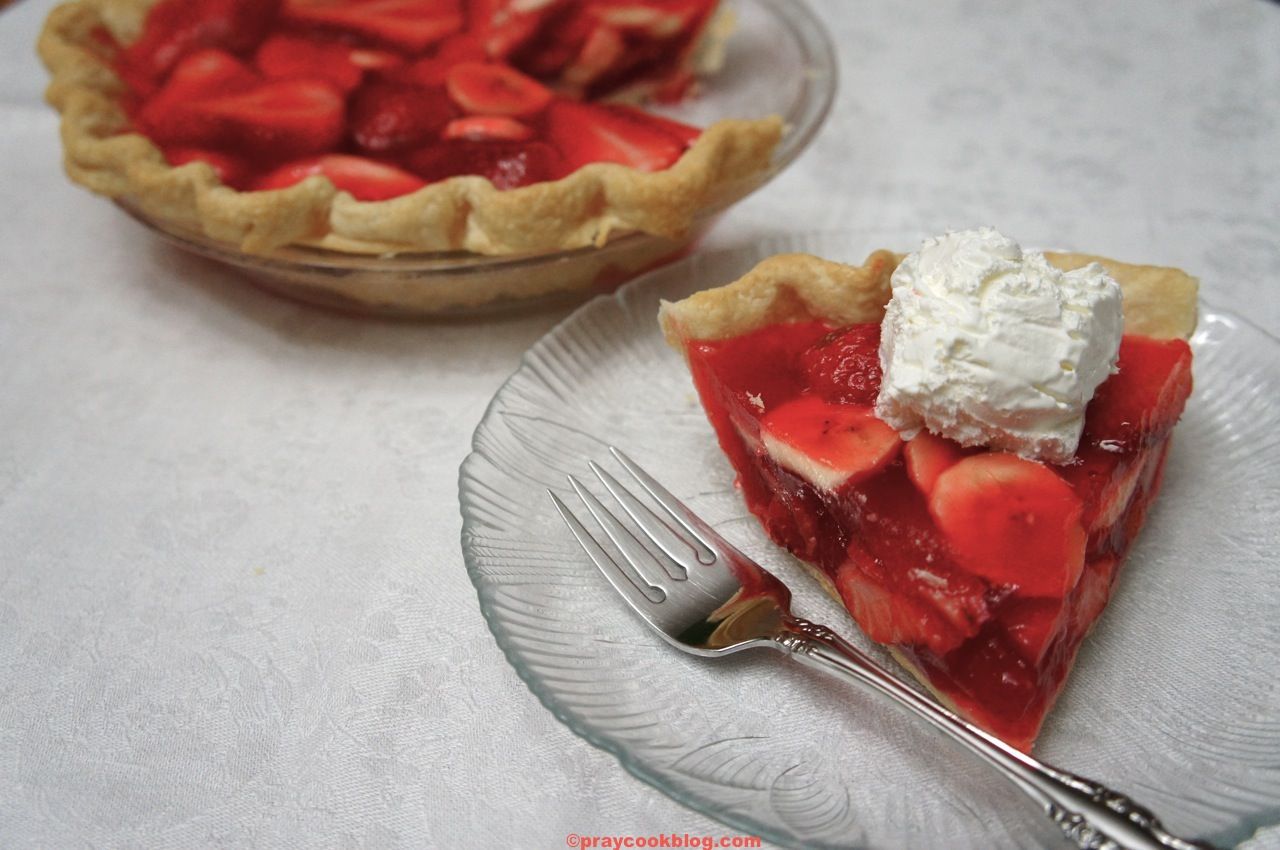 Deliciously fresh combination of strawberries and bananas. The thickened filling coats the fruit and keeps it fresh while the whipped cream adds a luscious yummy layer and topping!