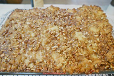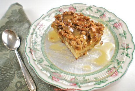 - In another bowl, mix and crumble together topping ingredients, brown sugar, butter, and pecans.