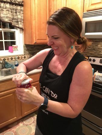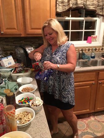 Susan is setting up the Sundae Bar and I just had to add this picture of my funny friend Caryle opening a jar of maraschino cherries!