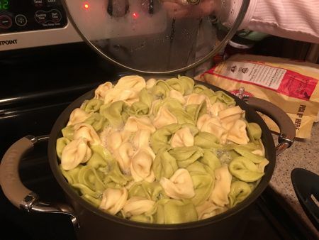 - 1 (9-ounce) package fresh tortellini, with cheese filling uncooked