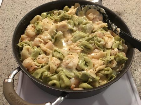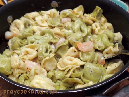 - Add cooked tortellini and Parmesan cheese, toss; season with salt and pepper to taste.