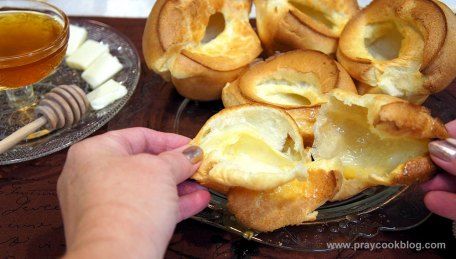 So what makes a cream puff a cream puff and a Popover … different? With the exception of water for milk and a pinch of salt the ingredient list is the same although differing amounts. I’m no rocket scientist but I guess the bottom line is an extra egg here, a little more butter there and voilà your creation changes from a Popover! to a Cream Puff or visa versa.