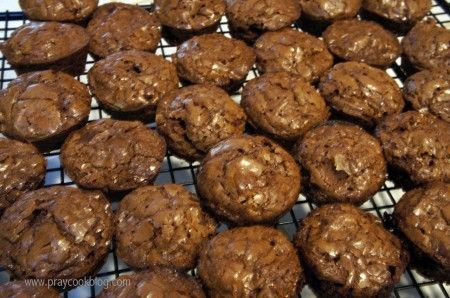 TWD bakers have a chance to share what they like and don’t like about the recipe before we actually post our experience. This time many bakers complained that the brownies did not bake in the specified amount of time, which is 25 to 28 minutes. For some the brownies were still soupy at 60 minutes. I decided early on that I wanted to try this recipe in my little mini-muffin pans. Boy am I glad I did! Read on …