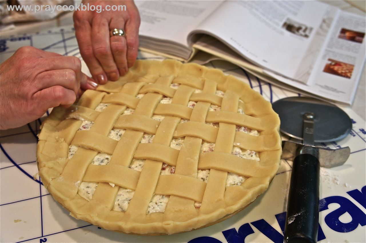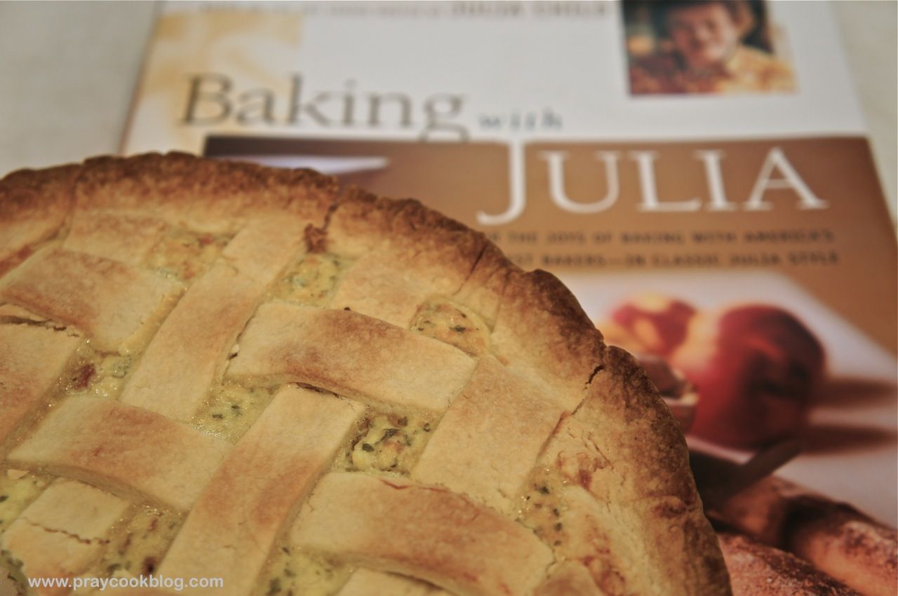 It is Tuesdays With Dorie and I am so excited to bring you this remarkable recipe for Pizza Rustica. In her book Baking With Julia Dorie Greenspan writes, “Pizza Rustica is a savory pie with a sweet crust, a combination that sounds unlikely but tastes terrific.” Having read that you will understand my excitement when I served Pizza Rustica for Sunday brunch and my chief culinary consultant (aka hubby) said, “Hmm, this has a slightly sweet flavor and tastes great with the cheesy filling”. *That’s just what Dorie said, well, in so many words! *I have been making quiche type dishes for a long time. I like them for breakfast, lunch and dinner. Even though I am not Italian, I’ve read that Pizza Rustica is a quintessential Italian holiday dish. It is a perfect recipe to make and a beautiful dish to serve as we celebrate Holy Week. I started out with my trusty Cuisinart food processor. I say “trusty” because this little lady is about 30 years old. My first food processor (exactly like this one) was purchased in about 1982. I used that one to death until the mid 90’s. I literally burned up the motor with use. I stumbled along without one until I attended an auction two years ago and found a “new” 30 year old processor, barely used. I was thrilled! I know Cuisinart has been selling them all along, but they just don’t make ’em like they used to! FYI – Julia Child was one of the first to let people in on the Cuisinart secret. She was among the first culinary experts to hail the food processor as a revolutionary kitchen appliance when it was introduced to America in 1973 by the late Cuisinart founder, Carl Sontheimer. She saw the food processor as a quick and easy way to make fine food and healthy dishes. I totally agree with Julia! But I digress … The sweet crust of Pizza Rustica comes from using the food processor to finely blend flour, sugar, baking powder, salt and cold butter. Once this is well blended adding eggs makes the dough. And what luscious dough it makes! Unlike pie crust dough, this dough can and should be kneaded! I love that since I tend to over-do my pie crust dough because it doesn’t like to be kneaded! I let the dough rest just a bit while I blended the filling via my food processor. The original recipe says to mix it up in a bowl, but then why would I, when I have my processor sitting right there? The filling is richly wonderful with ricotta cheese, eggs, Pecorino Romano cheese, mozzarella cheese, and shredded prosciutto. I almost substituted some sliced ham for the prosciutto. I am cheap frugal, in that way. 🙂 The 4 ounces of prosciutto was about $6. Yikes! However, since I have never made Pzza Rustica before, my curiosity won out and I used the exact ingredients listed in the recipe. By the time I bought the Pecorino Romano (way expensive) I was on a roll! **I am soooo glad I did. It was perfect in flavor and texture. **Moving on, I rolled out the soft, sweet, wonderful dough. The filling fits just right in a 9″ inch pie plate. Taking time to make the lattice crust is well worth the effort. Plus, this dough is so forgiving and easy to handle. Into the oven — the recipe says to bake 35 to 40 minutes. At 35 minutes the dough was still very light. I added another 5 minutes and turned the heat from 350 degrees to 375 degrees. I shouldn’t have turned up the heat. The edges browned just a bit more than I would have liked for picture taking. But for eating … it was remarkable. Our Tuesdays With Dorie hosts for this recipe are Emily from Capital Region Dining Blog and Raelynn at The Place They Call Home. Both of them have posted the actual recipe and would love to share it with you. This is just one more recipe from Dorie Greenspan’s book, Baking With Julia and I highly recommend you have your own copy to treasure, peruse when you don’t have enough energy to bake, and bake from when you just want the peace that comes from being in the kitchen 🙂