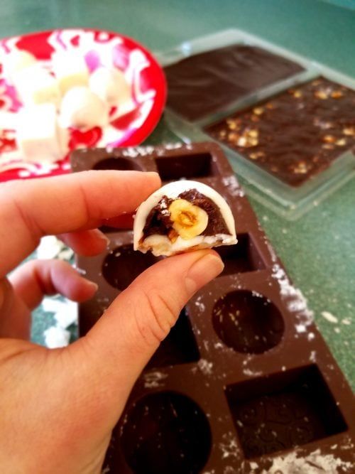 On a side note, I finally got to try out my candy molds! Back when I posted about my dark chocolate recipe, I mentioned that I didn’t have any good molds, so my sweet Aunt Denise mailed me some! Thank you, Aunt Denise!!!