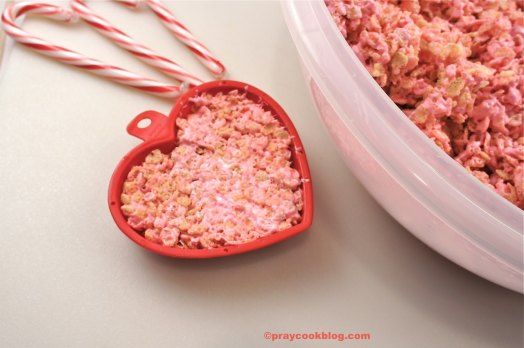 I added rice Krispies and gently packed them in my heart-shaped mold.