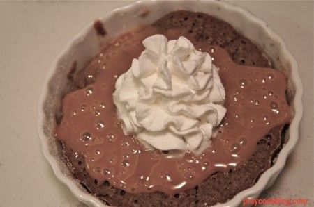 Turns out the ingredient list is very similar but the end result much different. These pudding cakes are a nicely dense, very moist chocolate cake that can be eaten alone, served with some Dulce de leche (caramel), topped with whip cream, or maybe even a little scoop of vanilla bean ice cream.