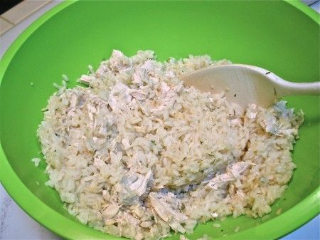 - Bring water to a boil, add bouillon cubes, Add rice and cook according to package directions. When all water is absorbed, pour rice into a large mixing bowl. Add diced turkey (or chicken).