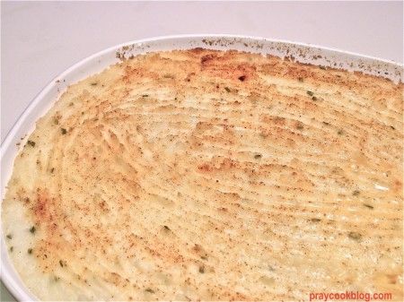 (3) I like to use a fork and comb through the potatoes slightly to give the top ridges that will brown nicely as it bakes.